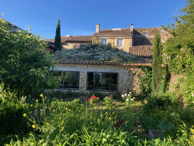 La Maison d’Amis est vaillante, néanmoins je la remet en vente. Si vous connaissez quelqu’un qui projette un changement de vie et qui est porteur de projet, parlez lui en. Elle a deux salles de pratique de 63 et 93 m2, 13 chambres, un studio indépendant, un bureau ensoleillé, une bibliothèque, une vaste cuisine avec cheminée pour l’hiver et une grande cuisine d’été donnant sur le jardin. Elle est meublée et peut le rester, elle est en parfait état de fonctionnement. L’eau coule dans le bassin et le jardin est plein de recoins ombragés.