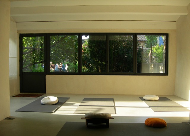 La Maison d’Amis est vaillante, néanmoins je la remet en vente. Si vous connaissez quelqu’un qui projette un changement de vie et qui est porteur de projet, parlez lui en. Elle a deux salles de pratique de 63 et 93 m2, 13 chambres, un studio indépendant, un bureau ensoleillé, une bibliothèque, une vaste cuisine avec cheminée pour l’hiver et une grande cuisine d’été donnant sur le jardin. Elle est meublée et peut le rester, elle est en parfait état de fonctionnement. L’eau coule dans le bassin et le jardin est plein de recoins ombragés.